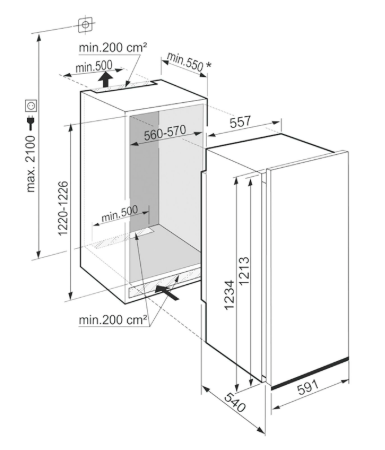 - Rozměry výklenku výška/šířka/hloubka: 122-122,6 / 56 - 57 / 55,0 cm