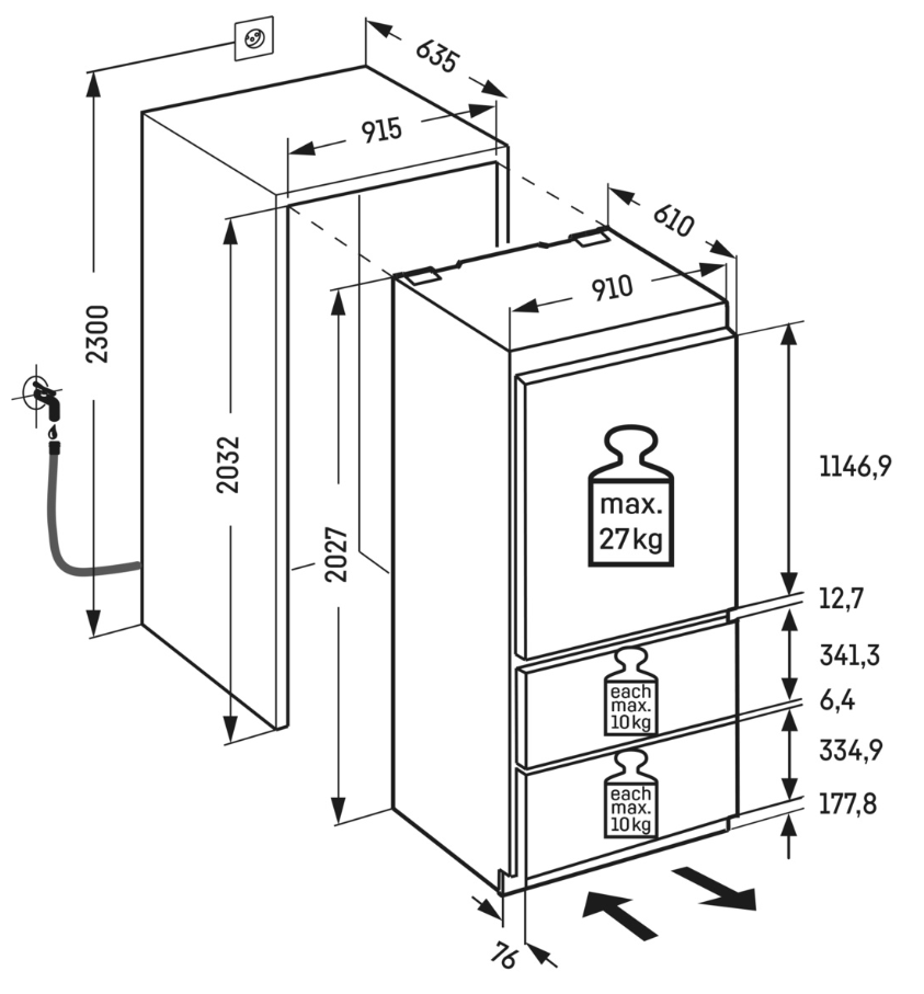 - Max. hmotnost dveří kuchyňské linky: 27/10/10