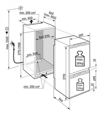 • Rozměry výklenku výška/šířka/hloubka: 177,2 - 178,8 / 56 - 57 / 55,0 cm