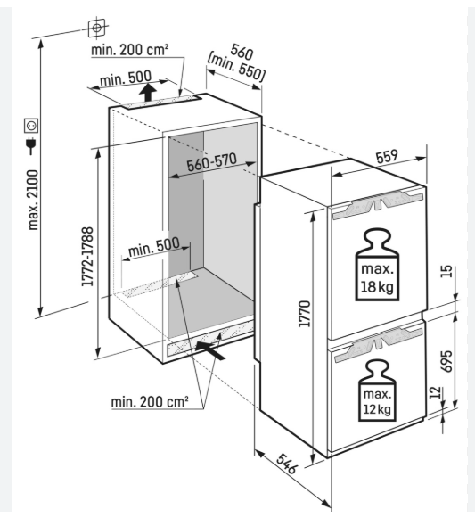 • Rozměry výklenku výška/šířka/hloubka: 177,2 - 178,8 / 56 - 57 / 55,0 cm