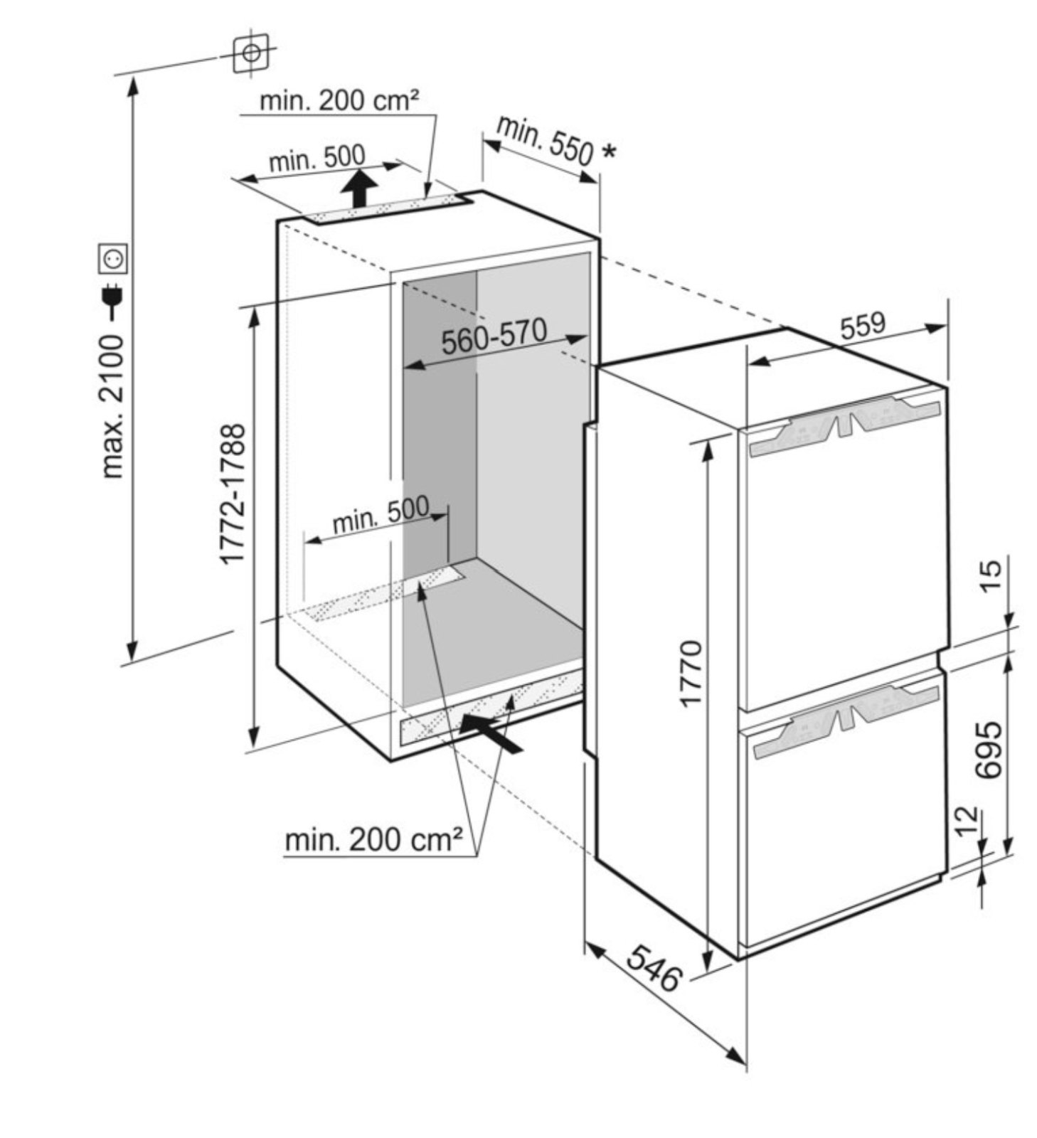 • Rozměry výklenku výška/šířka/hloubka: 177,2 - 178,8 / 56 - 57 / 55,0 cm