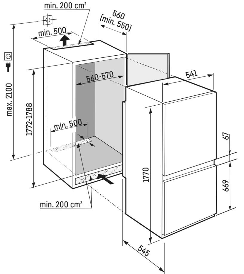 - Rozměry výklenku výška/šířka/hloubka: 177,2 - 178,8 / 56 - 57 / 55,0 cm