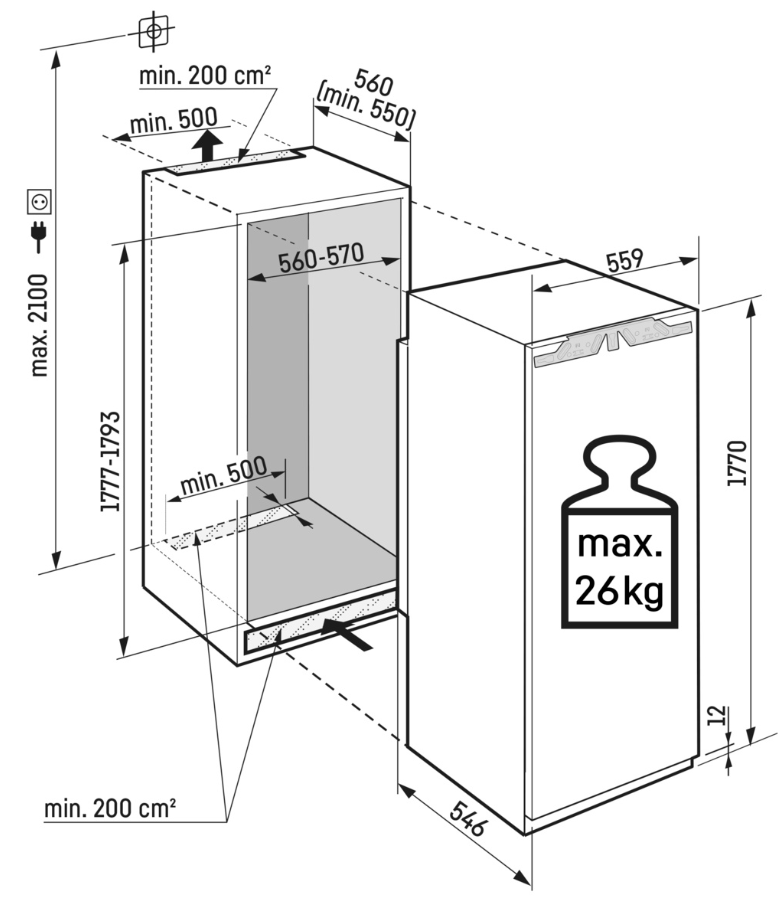 - Rozměry výklenku výška/šířka/hloubka: 177,2 - 178,8 / 56 - 57 / 55,0 cm