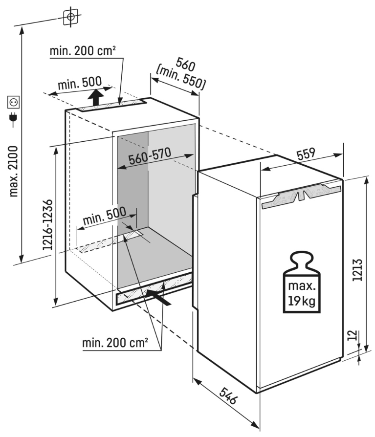 • Max. hmotnost dveří kuchyňské linky: 19kg