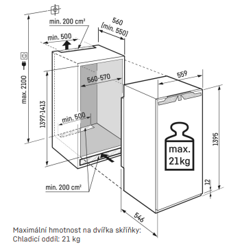 - Max. hmotnost dveří kuchyňské linky: 21kg