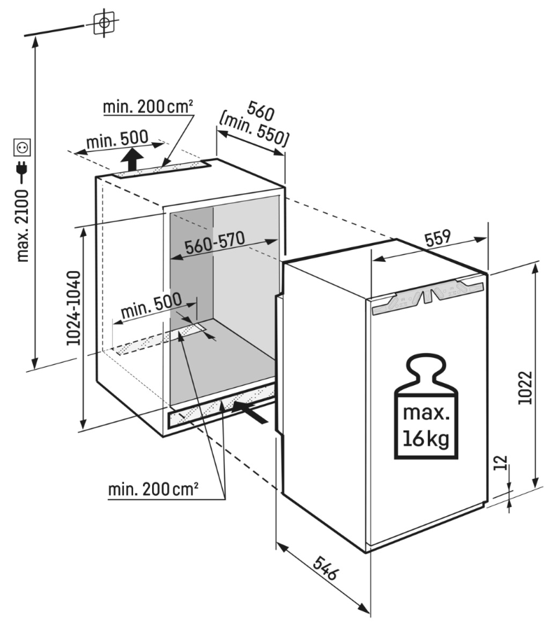- Max. hmotnost dveří kuchyňské linky: 16 kg