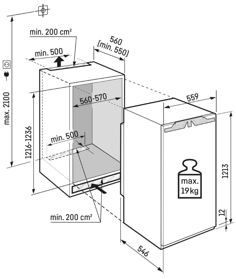 - Max. hmotnost dveří kuchyňské linky: 19 kg
