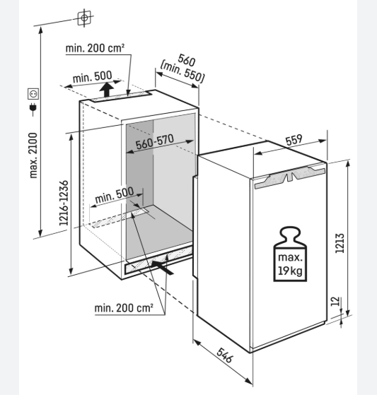 - Rozměry výklenku výška/šířka/hloubka: 122-123,6 / 56 - 57 / 55,0 cm