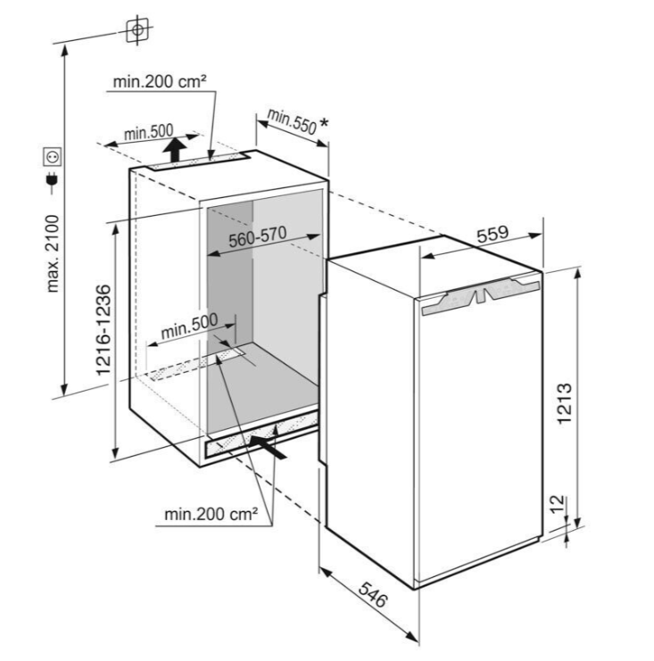 - Rozměry výklenku výška/šířka/hloubka: 122-123,6 / 56 - 57 / 55,0 cm