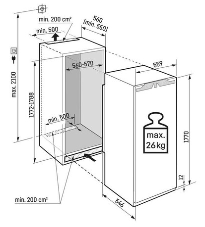 • Max. hmotnost dveří kuchyňské linky: 26