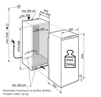 • Rozměry výklenku výška/šířka/hloubka: 177,2 - 178,8 / 56 - 57 / 55,0 cm