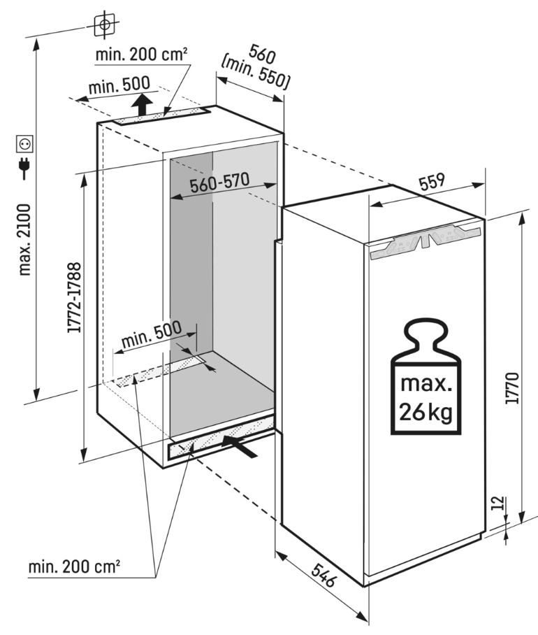 • Rozměry výklenku výška/šířka/hloubka: 177,2 - 178,8 / 56 - 57 / 55,0 cm