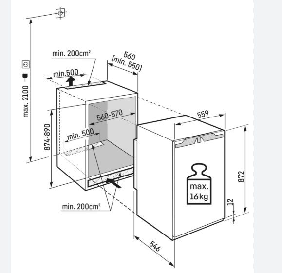 • Rozměry výklenku výška/šířka/hloubka: 87,4-89/ 56 - 57 / 55,0 cm