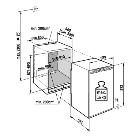 - Rozměry výklenku výška/šířka/hloubka: 87,4-89/ 56 - 57 / 55,0 cm