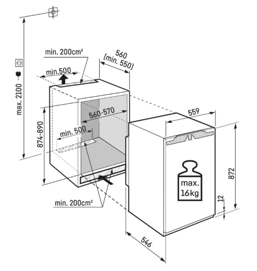 - Rozměry výklenku výška/šířka/hloubka: 87,4-89/ 56 - 57 / 55,0 cm