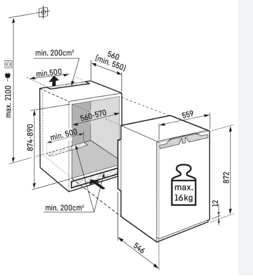 - Max. hmotnost dveří kuchyňské linky: 16 kg