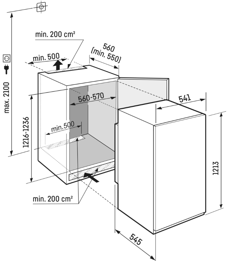 - Rozměry výklenku výška/šířka/hloubka: 121,6 - 123,1 / 56 - 57 / 55,0 cm