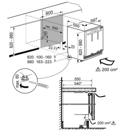 - Skupina výrobku: Integrovatelná podstavná chladnička