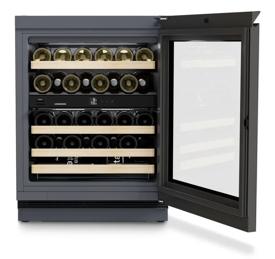 Víno potřebuje ticho a klid. Proto naše temperovací vinotéky zaručují jemné uskladnění s mimořádně tichým kompresorem speciálně vyvinutým společností Liebherr a stabilními policemi vyrobenými z pevného bukového dřeva. Víno tak bude moci zrát v klidu a nerušeně.