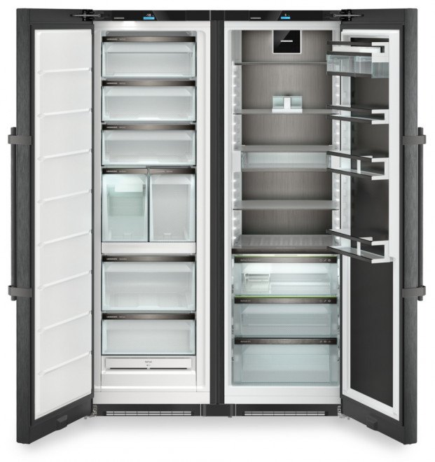 • Liebherr SRBbsc 529i - volně stojící chladnička s BioFresh Professional monoklimatická, objem 386 l, HydroBreeze, Fish&Seafood, InfinitySpring, BluPerformance, LightTower, SoftSystem, Soft-Telescopic Rails, Touch&Swipe Display, integ. SmartDevice, BlackSteel
